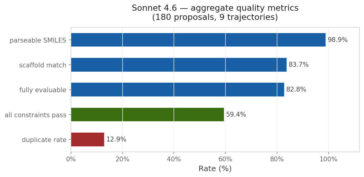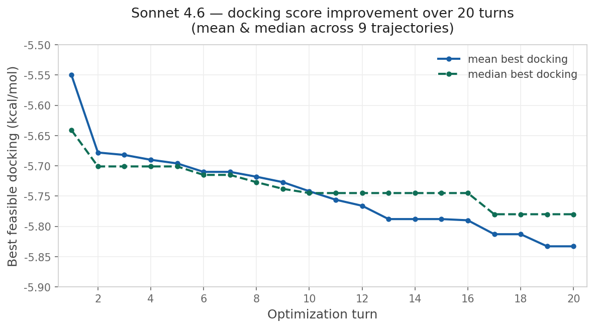This is exactly what we’re seeing now. Despite having been optimistic about agentic AI–driven optimization for months now, I’m still impressed that a single evening of Claude Code (plus Rowan’s API) can produce a competent med-chem optimization agent—no domain-specific fine-tuning or specialized literature access necessary. Capabilities are advancing incredibly quickly in this field, and it’s possible to do things today that were hard to imagine a year ago.